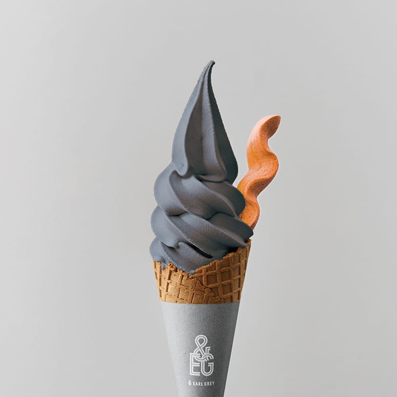 黒いソフトクリームは、焙煎する前の生豆を氷温熟成させた深みのあるコーヒー豆と国産竹炭で作られています。さらに、天然ベルガモットでアールグレイの爽やかな香りがつけられた爽やかなソフトクリームです。コーヒーとアールグレイとソフトクリームの融合をお楽しみください。