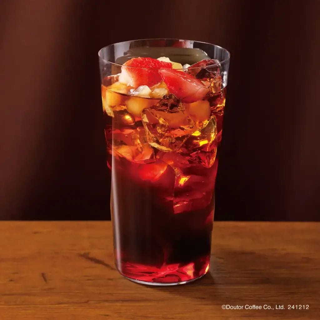 赤ワインを彷彿とさせる深い香りの葡萄ジュースにシナモンのフレーバーシロップを合わせた、サングリア仕立てのアイスティーです。甘味と酸味、渋味のバランスのとれた葡萄ジュースには、コンコード種とカベルネ・ソーヴィニヨン種の2種類の葡萄を使用しています。仕上げにシャキシャキとした食感が楽しめるふじりんごソースと、赤が映えるいちごをトッピングしました。寒い時期を彩る、コク深く華やかな一杯です。