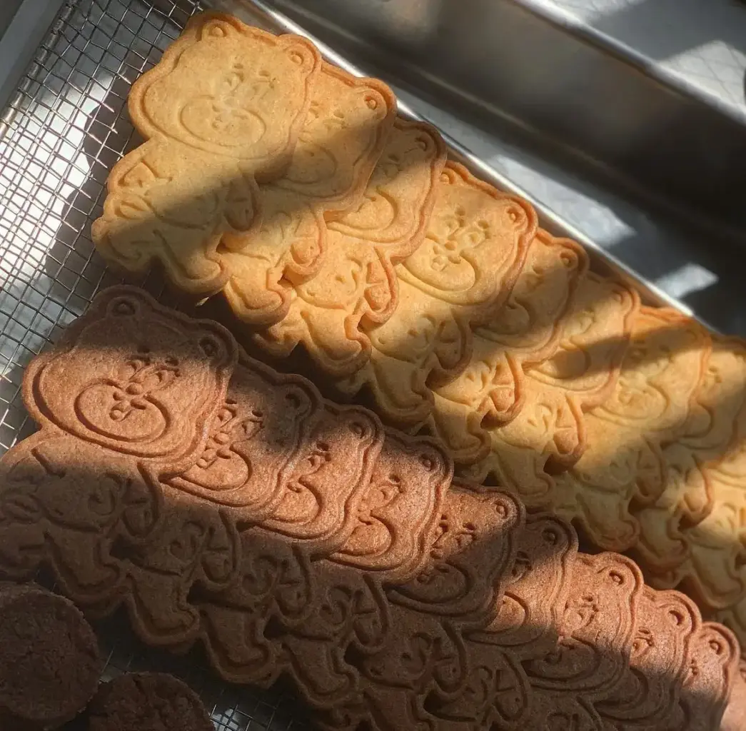 九州産の小麦粉「月ちくご」とたっぷりのバターを使い、風味豊かでサクサク食感の、シンプルながらも飽きのこない味わいに仕上げました。