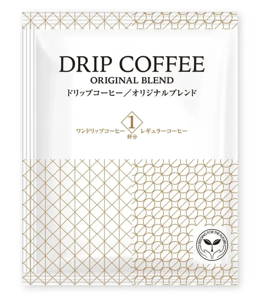 また、製品パッケージには、宿泊施設などから需要の高い紙素材を採用し、暗い室内でも目に入りやすく紙の質感が伝わりやすい白色を基調に、コーヒーの花・葉・コーヒー豆・ドリップをモチーフとした幾何学模様をデザインしています。裏面には、淹れ方と注意書きを4か国語(日本語・英語・中国語・韓国語)で表記しており、インバウンド利用率の高いホテルの客室や観光施設での提供に最適です。