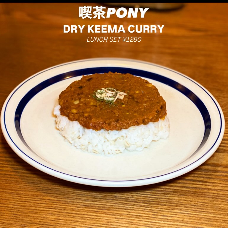 喫茶PONYの1番人気のドライキーマカレーは、スパイシー&フルーティーという珍しい組み合わせのカレーです。また、10種の豆を使用した優しい甘さや、オレンジフルーティを感じられるのが特徴です。