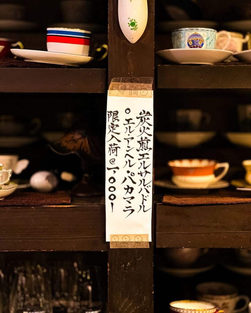 茶亭 羽當では、豆の個性を最大限に引き出すため、一杯ずつハンドドリップで提供されています。コーヒーカップも多種多様なアンティークの中から選ばれ、コーヒーの味わいをさらに引き立てます。