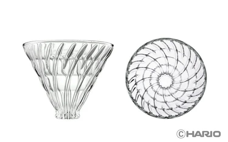 ドリッパーの内部のリブ(凹凸)を高く上部までのばしたことにより、ペーパーとドリッパーの間に空間ができます。「蒸らし」の際に、この空間から空気が抜け、コーヒー粉がしっかり抜けるので、ネルドリップのような味わいになります。