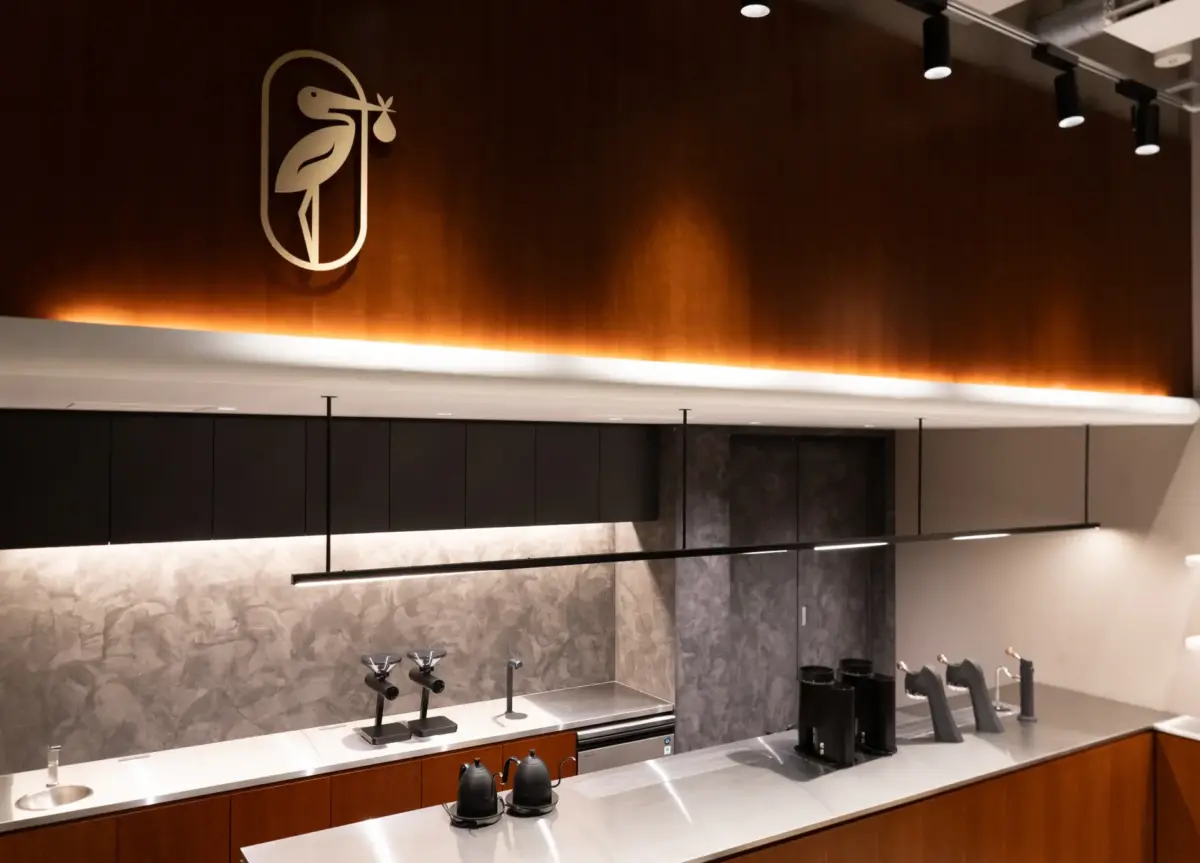 Modbar社の埋込型エスプレッソマシンの導入でシームレスなカウンターを実現。お客様とのコミュニケーションを円滑にし、バリスタの所作の一つ一つもご覧いただけます。美味しいエスプレッソの提供はもちろんのこと、表参道店を通じてお客様に特別なコーヒー体験を提供します。
