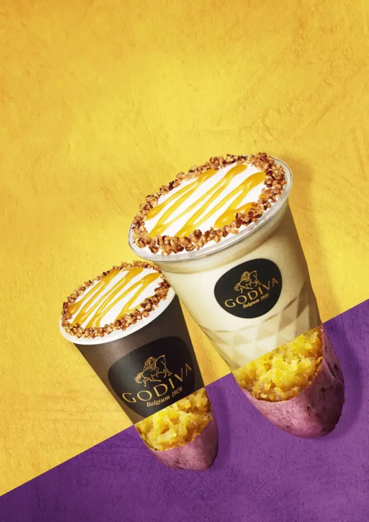 蜜がしたたるとろける甘さ、クリーミーな食感が特徴の種子島産の安納芋を使用したソースに、ホワイトチョコレートを合わせました。ゴディバのチョコレートと安納芋、双方の味わいを活かしつつ、程よい甘さを追求した、まるで焼き芋のような味わいのショコリキサーです。
