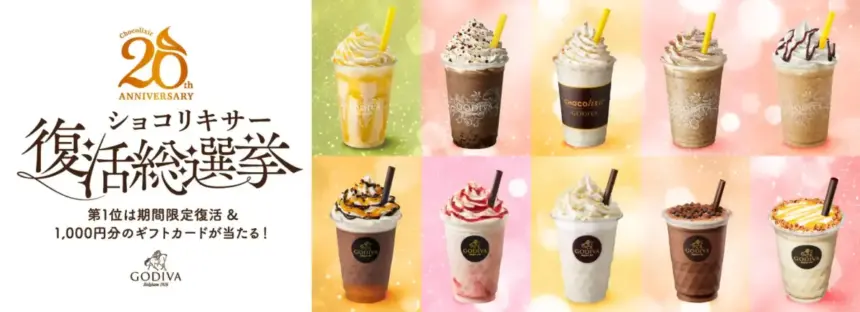 ゴディバ ジャパン株式会社(東京都港区)は、チョコレートドリンク「ショコリキサー」日本発売20周年を記念して、「ショコリキサー 20周年記念 復活総選挙」を、2025年4月4日(金)より特設サイトにて実施いたします。さらに、抽選で合計40名様に1,000円分のショコリキサーギフトカードをプレゼントする、「ショコリキサー 20周年記念 復活総選挙 投票&シェアキャンペーン」も同時開催します。