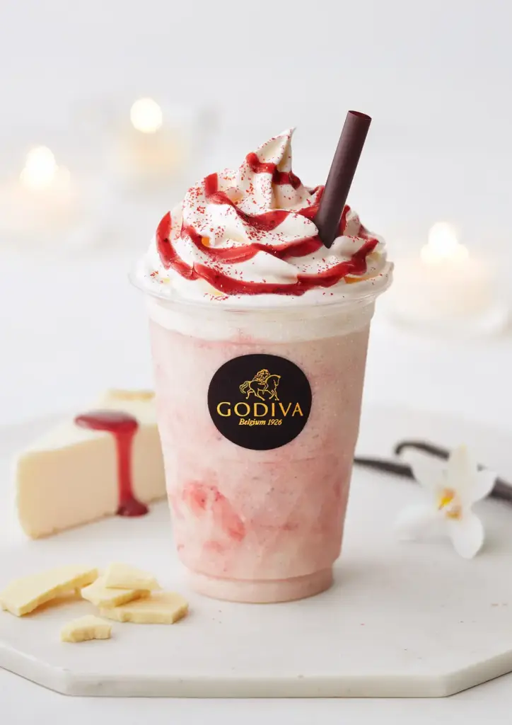 ゴディバのホワイトチョコレートに、北海道産生乳100使用のチーズと、ストロベリーソース、バニラシロップを合わせることで、こっくりと甘いホリデーシーズンにピッタリの味わいに仕上がりました。