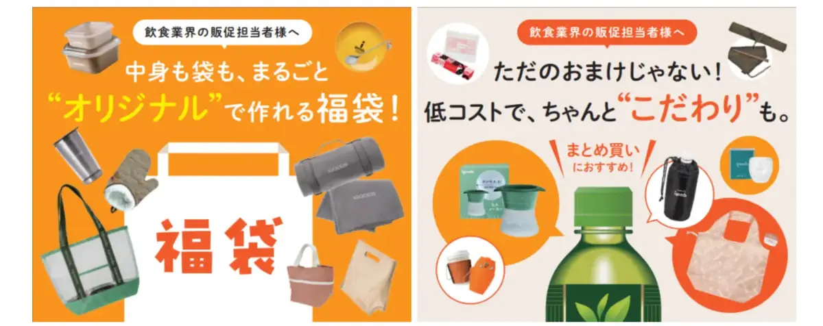 - 「福袋」「まとめ買い」「アップサイクル」の3テーマで展開する飲食業界特化グッズ