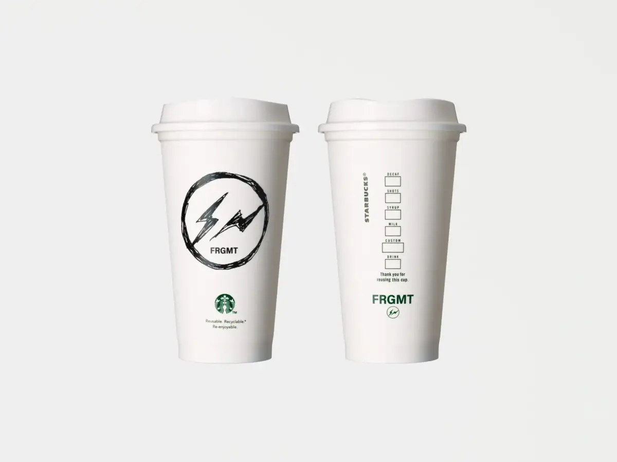 『BBTEA by FRAGMENT』を入れて持ち歩きたくなるような『リユーザブルカップ FRGMT MYST』も発売します。フロントには、「FRAGMENT」のシンボルであるサンダーマーク、サイドには、「FRGMT」の文字がデザインされています。バックサイドにも、「FRGMT」とサンダーマークがプリントされた特別仕様です。
