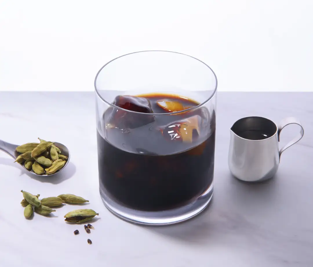 | 特徴 | ダブルネルドリップコーヒーに、別添えの上島珈琲店オリジナルのカルダモンシロップをお好みの量で注ぎ、オン・ザ・ロックで楽しんでいただく新体験メニューです。カルダモンシロップのスパイスと、濃厚なコクを持ちながらもクリアなコーヒーとが重なり合い、凛とした味わいと清涼感溢れる余韻をじっくりと楽しむことができます。オールドファッショングラスを傾けるたびに、氷の涼しげな音と飲んだ瞬間の爽やかな香り、味わいが心を和ませます。コーヒーの新しい世界をご堪能ください。 |