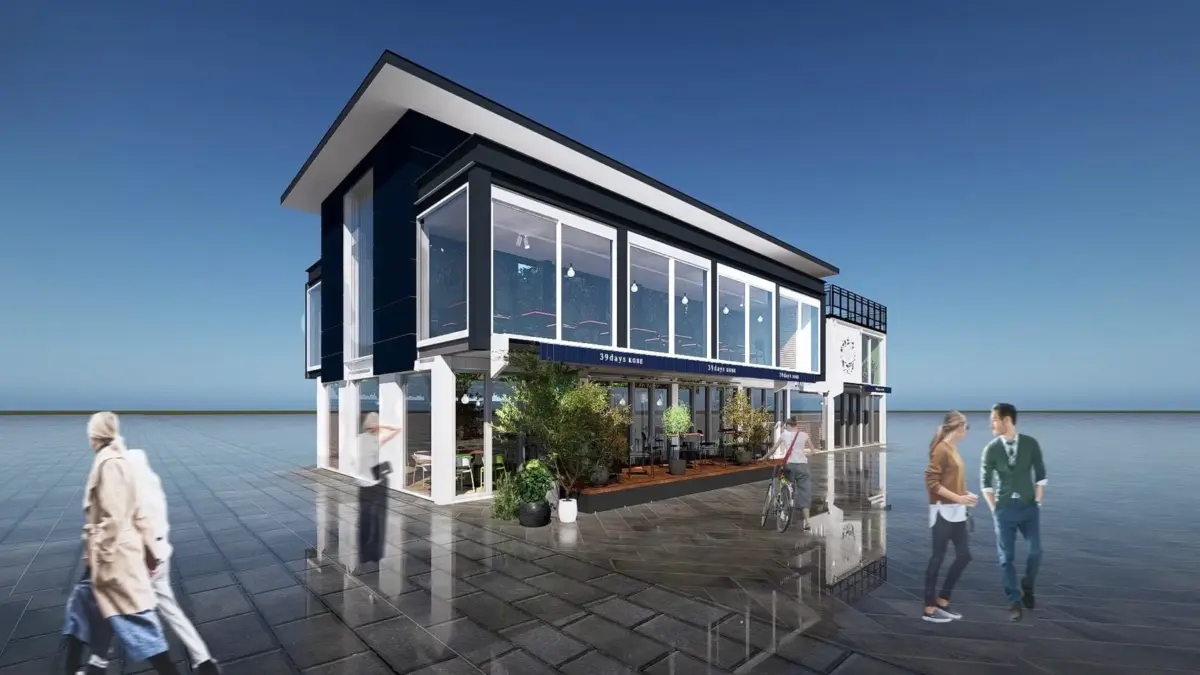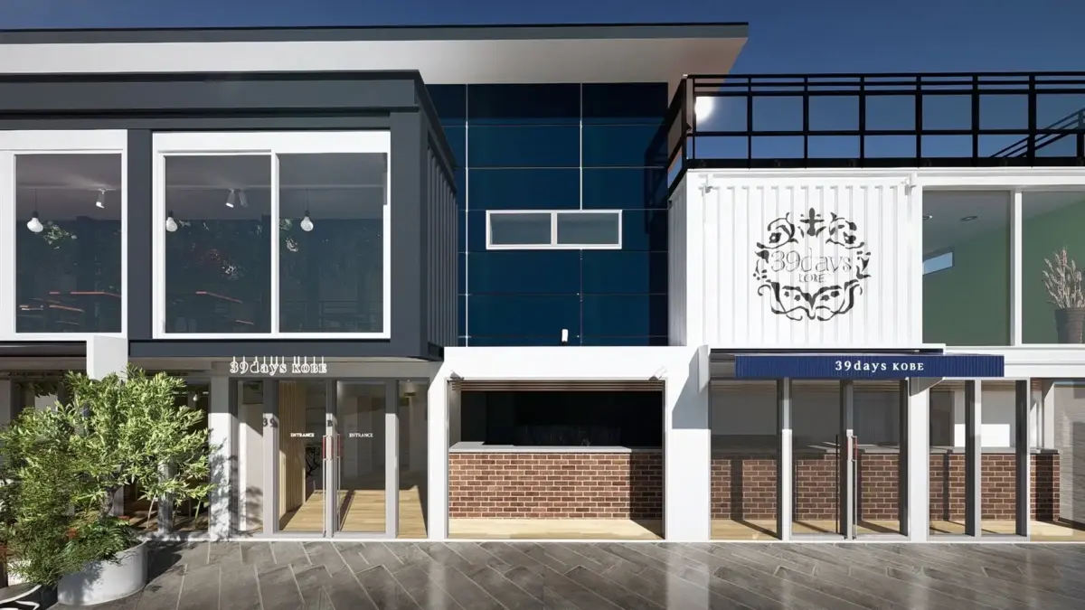 「39days KOBE」は、メリケンパークという海と歴史が交差するロケーションにて、港町神戸の歴史と自由でモダンな精神を、日常の中で味わえる場を提供します。外観はコンテナ風、店内はグリーンに包まれ、訪れる方が“過去と現在がゆるやかにつながるタイムレスな時間”を感じられるデザインです。