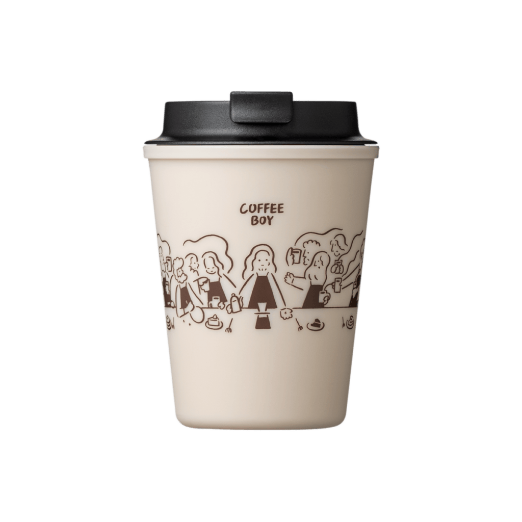 一方、イラストレーターの「COFFEE BOY」は、コーヒーをテーマにした作品を描き続け、その魅力をユーモアと温かみにあふれたアートで表現。リバーズがドリンクウェアを通じてコーヒーのある時間を支えてきたのに対し、COFFEE BOY氏はアートを通じて、その楽しさや豊かさを伝えてきました。