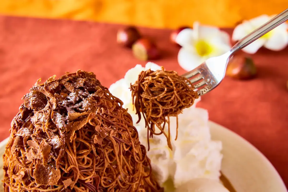 モンブランクリームは、イタリア産の栗を100%使用したマロンペーストと、発酵バターなどを混ぜあわせたコナズ珈琲オリジナルです。塩味を加えることで栗のもつ味わいを引き立たせました。さらに今年は、ほろ苦く濃厚なチョコレートガナッシュがとろり。オーダーをいただく度に直径わずか1mmで絞り出すことで、ふわっとした滑らかなくちどけを実現しています。