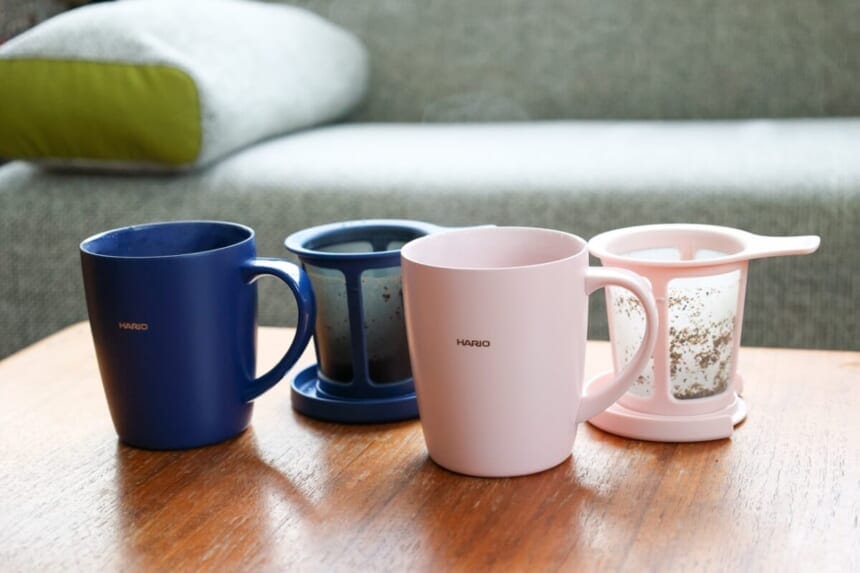 急須もドリッパーも不要!ハリオの多機能マグ「ティー&コーヒーメーカーマグ」に待望の新色「サクラピンク」と「ネイビー」が登場!