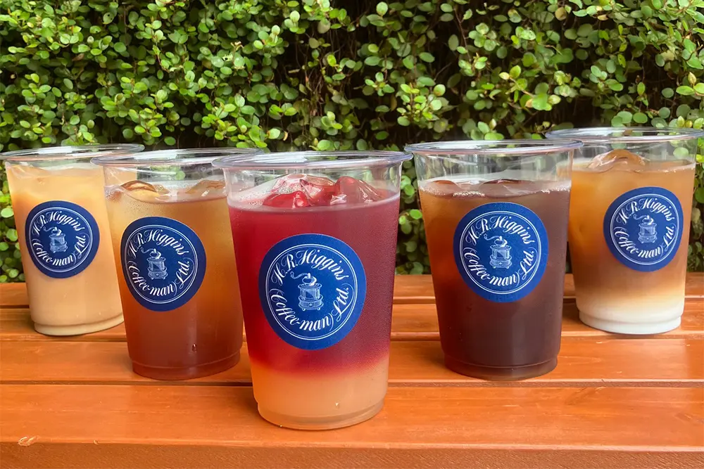 ●〈H.R.ヒギンス〉[写真左から]デュークストリート ミルクティー 601円、ブルーレディ ストレートティー 501円、ベリー六重奏 セパレートアイスティー 701円、クレオールブレンド ブラック 501円、クレオールブレンド カフェオレ 601円