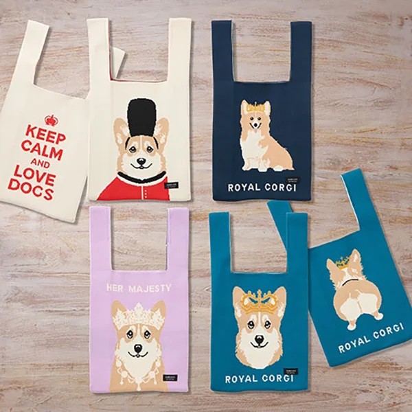 ●〈ジュビリー〉ニットトートバッグ 英国ロイヤルコーギー各種 各3,850円(中国製)