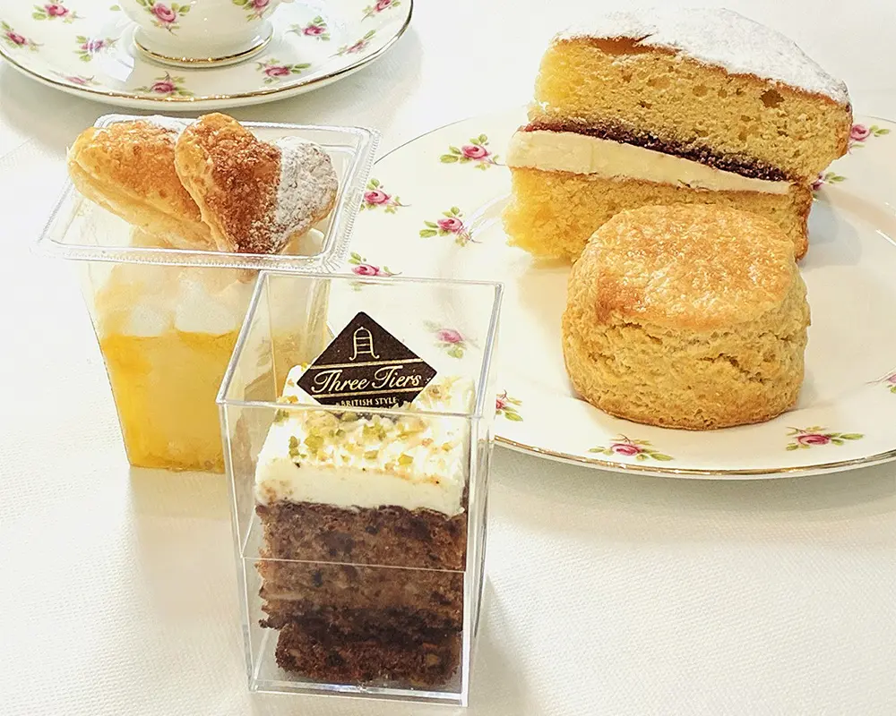 日英のホテルなどでキャリアを積んだ一ノ木理恵シェフが作り出すスイーツが魅力の「スリーティアーズ」。基本レシピの3倍量のバターを使った催事限定のトリプルバタースコーンや、ロンドンの五ツ星ホテルの味わいを再現したキャロットケーキ、大人気のレモンクリームパイなどが登場します。