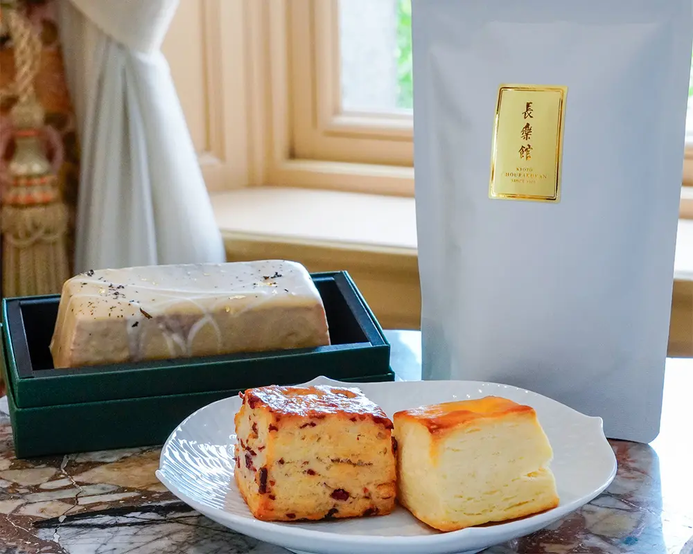 明治42年に実業家の村井吉兵衛によって迎賓館として建築され、2024年に国の重要文化財に指定された「長楽館」。格式あるアフタヌーンティーで知られる長楽館のカフェで人気のスコーンや、紅茶をふんだんに使用したパウンドケーキ、オリジナルブレンドティーバッグが登場します。