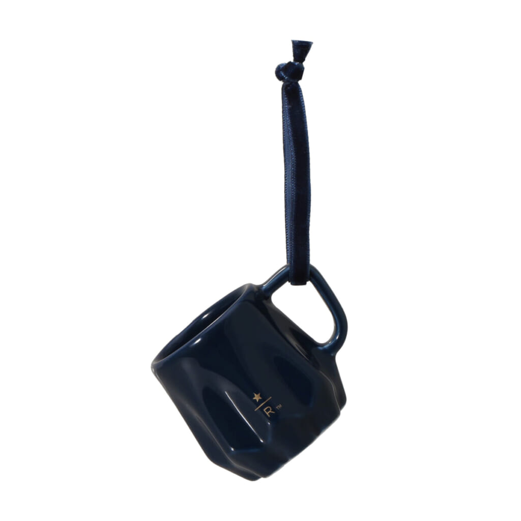 ホリデーコレクションとして登場するネイビーのドレープマグと同じデザインの磁器製オーナメント。ツリーのオーナメントとしてはもちろん、インテリアとしてもホリデー気分を盛り上げてくれます。