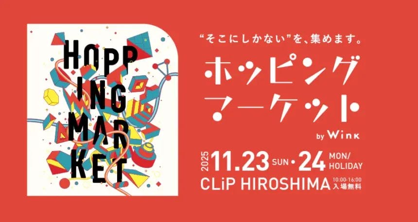 広島・備後エリアの地域情報誌「Wink」(発行:株式会社アスコン)は、創刊40周年を記念して初の大型主催イベント 『Hopping Market by Wink』 を2025年11月23日(日)・24日(月・祝)の2日間、CLiP HIROSHIMA(広島市中区千田町) にて開催します。