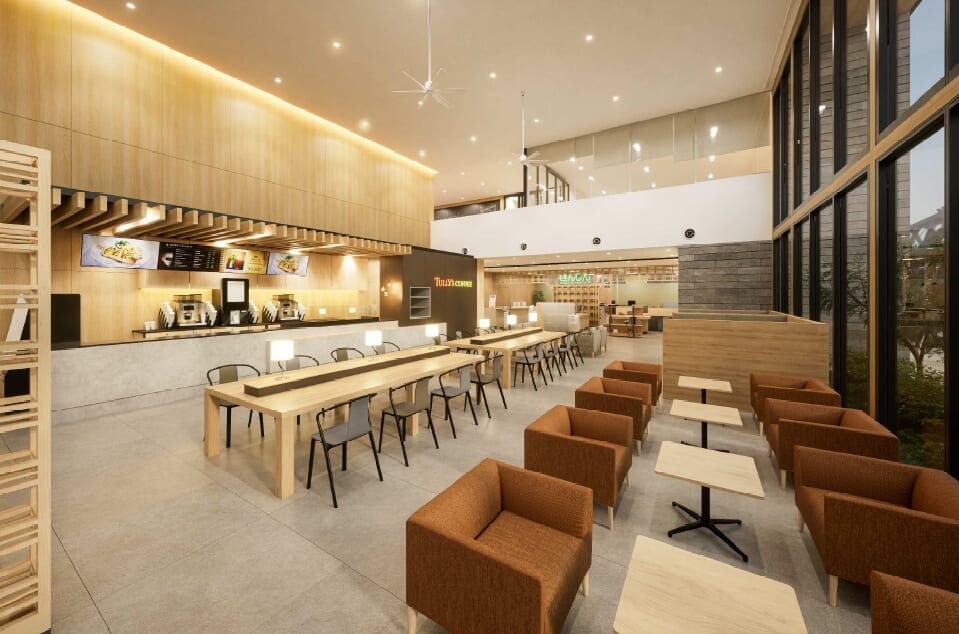 当店は、静岡県を中心に展開する三島信用金庫とタリーズコーヒーとの初めてのコラボレーション店舗です。1階には、信用金庫とタリーズコーヒーの共有スペースを広く設け、ゆったりと座れる4名掛けのソファ席や6名掛けのテーブル席、2階には、富士山を望むテラス席を併設しており、開放感のある店内でコーヒータイムをお過ごしいただけます。タリーズコーヒーは、コミュニティーカフェとして、三島信用金庫が掲げる「地域を未来に“TUNAGU”」をテーマに、人と人がつながる場を創出し、地域とのつながりを育んでまいります。