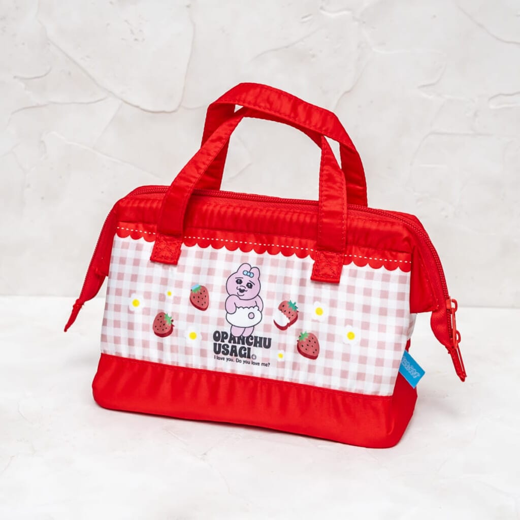 本シリーズは、ピンクと赤を基調としたギンガムチェック柄に、 いちごを抱えた「おぱんちゅうさぎ」が描かれた愛らしいデザインが特徴です。 毎日のお昼ごはんが楽しくなるような、ランチボックスやボトル、バッグなどを展開します。