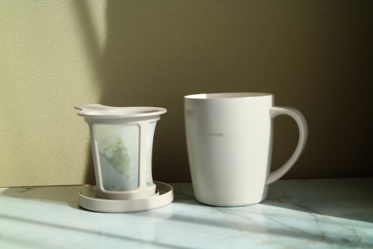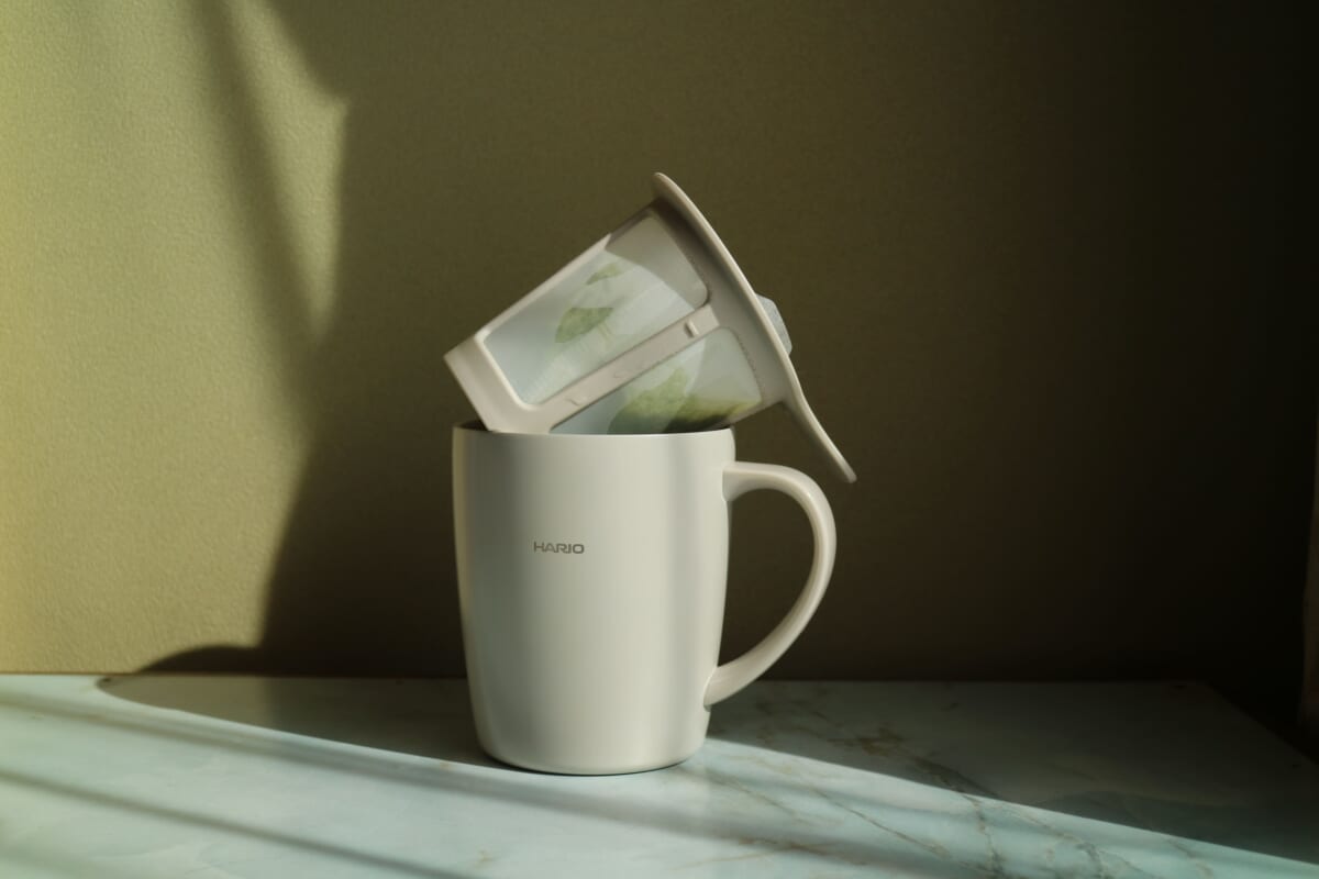 そんなときにおすすめしたいのが、日本の老舗耐熱ガラスメーカー・HARIOが販売している「ティー&コーヒーメーカーマグ」(3300円)。マグカップとストレーナーがセットになった商品で、ドリッパーや急須を使わず、これひとつでおいしいコーヒーやお茶を淹れられる優れものです。オフィスでも自宅でも、シーンを問わず生活にそっとなじんでくれます。