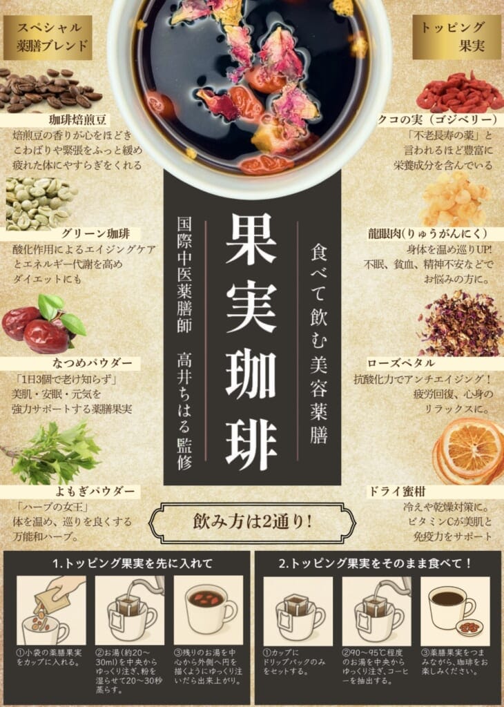 食べて飲む美容薬膳「果実珈琲」リリースキャンペーンお試しセット