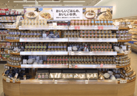 ご飯をおいしく食べるシリーズでありながら、ちょい足しや、簡便調味料としても提案するシリーズ。新商品を順次追加し、ビッグコンテンツとして成長&拡大中。フェースデザインを一新し、伊勢崎下道寺店では29アイテムを展開。