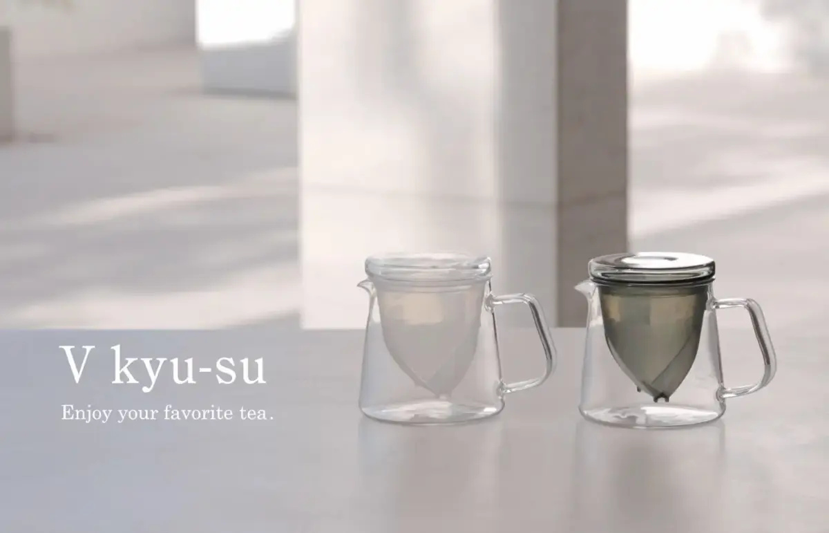 耐熱ガラスメーカーのHARIO株式会社が、2026年3月に新たに発売したガラス急須「V急須」。