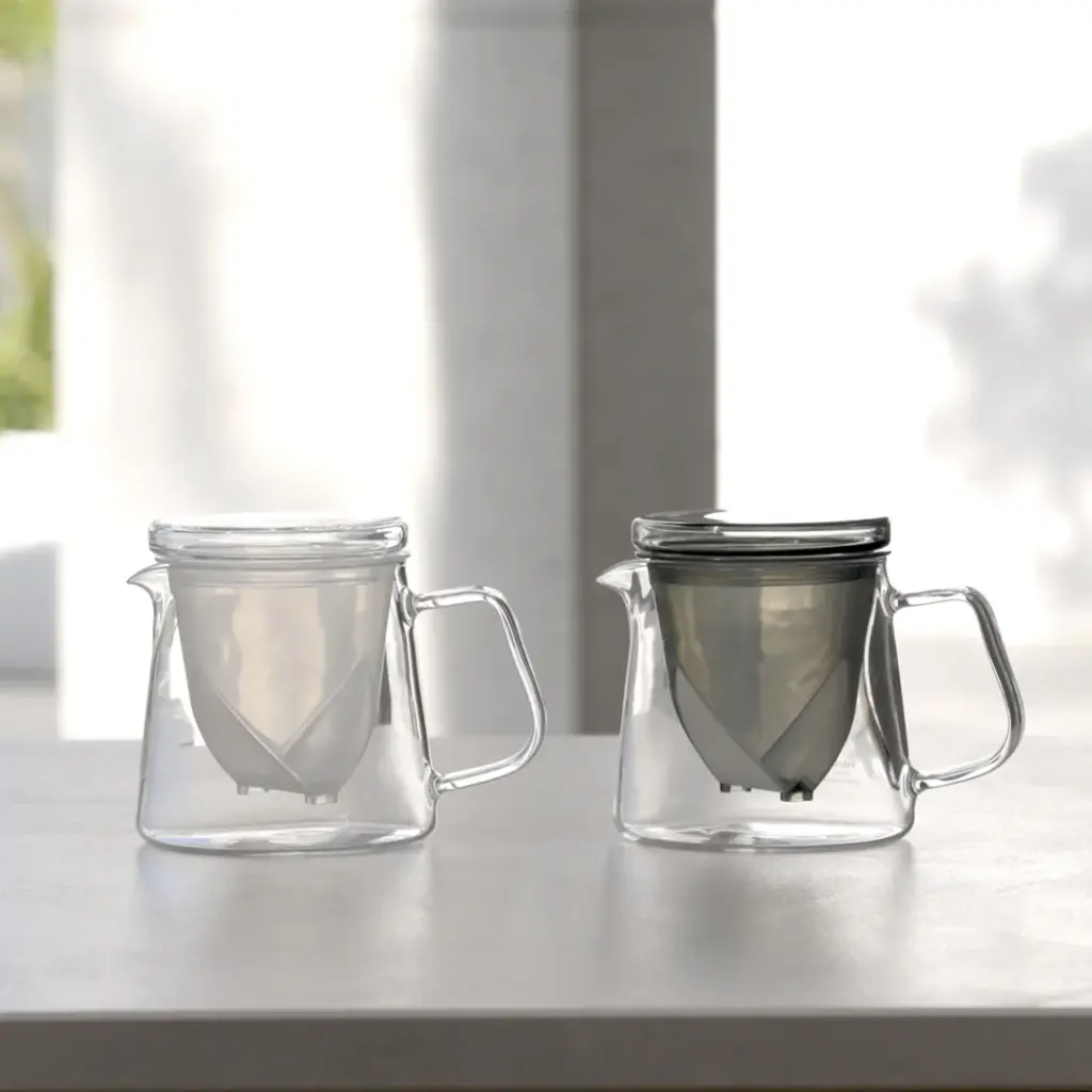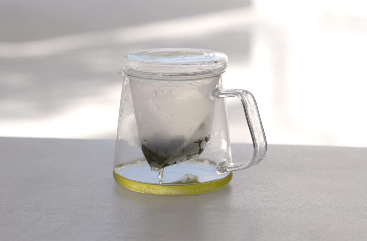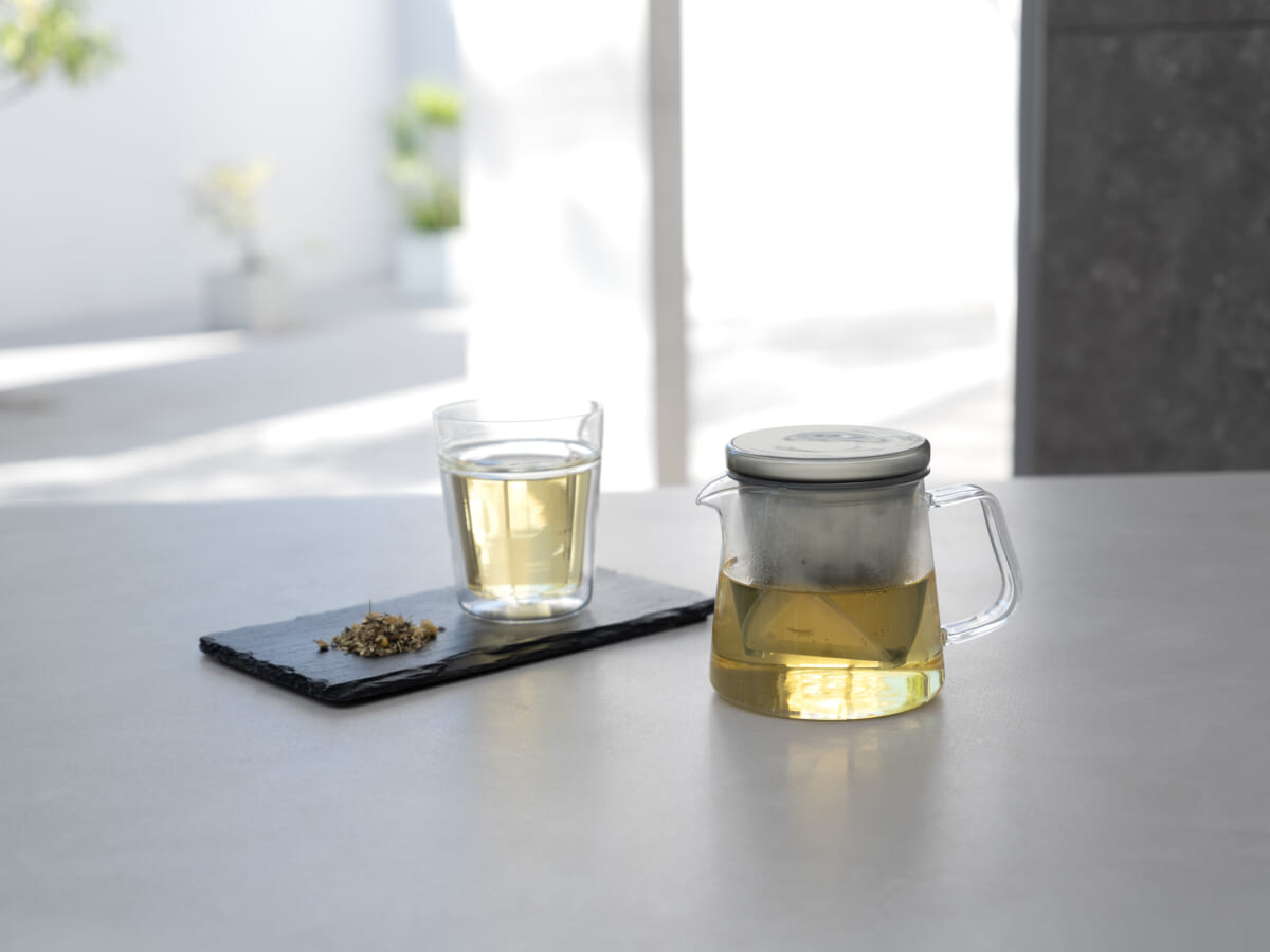 本体は透明な耐熱ガラス製。抽出中の茶葉の開きや色の変化を視覚的に楽しめる点も特徴です。