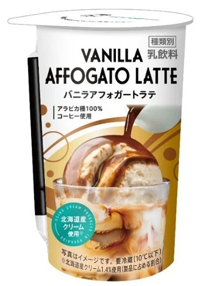 「バニラアフォガートラテ」は、バニラアイスにエスプレッソコーヒーをかけて味わうイタリア発祥のデザート「アフォガート」の風味を再現したカップ飲料です。アラビカ種100%のコーヒーと北海道産クリームを組み合わせることで、ほろ苦い余韻と濃厚な香りが広がるラテに仕上げられています。