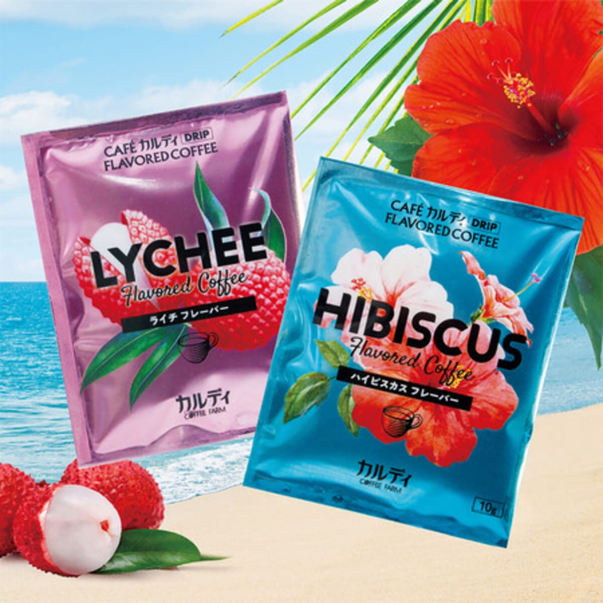 仲間入りするのは「カフェカルディドリップ フレーバーコーヒー ハイビスカスフレーバー」と「カフェカルディドリップ フレーバーコーヒー ライチフレーバー」の2種類。