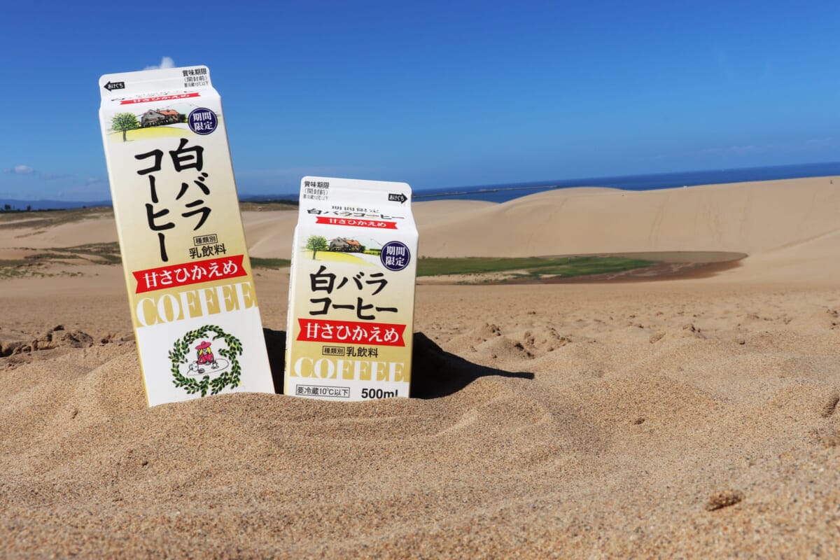 「白バラコーヒー」は、鳥取県内産生乳を70%使用し、生乳本来の甘味とコーヒーの香りを大切にした入院料です。カラメルや香料を使用しておらず、シンプルな材料のみで作られているので素朴な美味しさが楽しめると人気です。