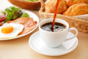 コーヒー 朝食イメージ Pour coffee into the cup Breakfast image