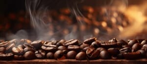 Roasting coffee beans with smoky focus and blur Copy space image Place for adding text or design