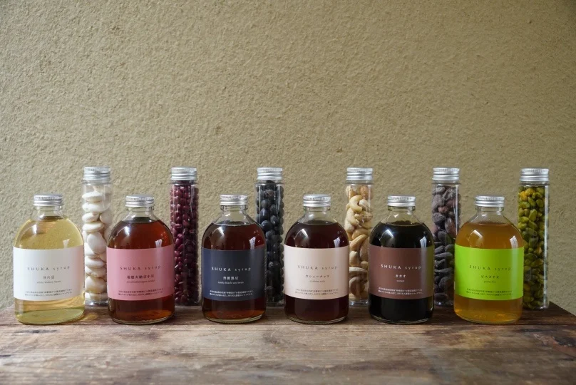 本店カフェにてシロップを使用したオリジナルドリンクも提供開始(写真1)SHUKAの定番6種類の種の個性を移した6種のシロップ…